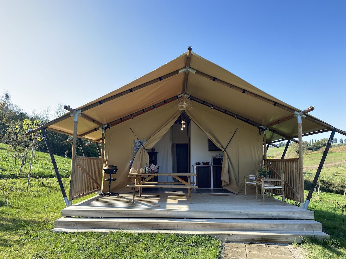 Agriturismo Diacceroni’s owner is always searching for innovative ways to make our guests’ experience unique. So, he has built 6 comfortable safari-style tents in the most panoramic part of the estate with a splendid view of the Tuscan countryside and Volterra. It’s not a crowded campsite, but a place to fully enjoy peace and nature. Just a few minutes' walk away, there is a panoramic saltwater swimming pool, a restaurant, and the opportunity to add many unforgettable experiences.