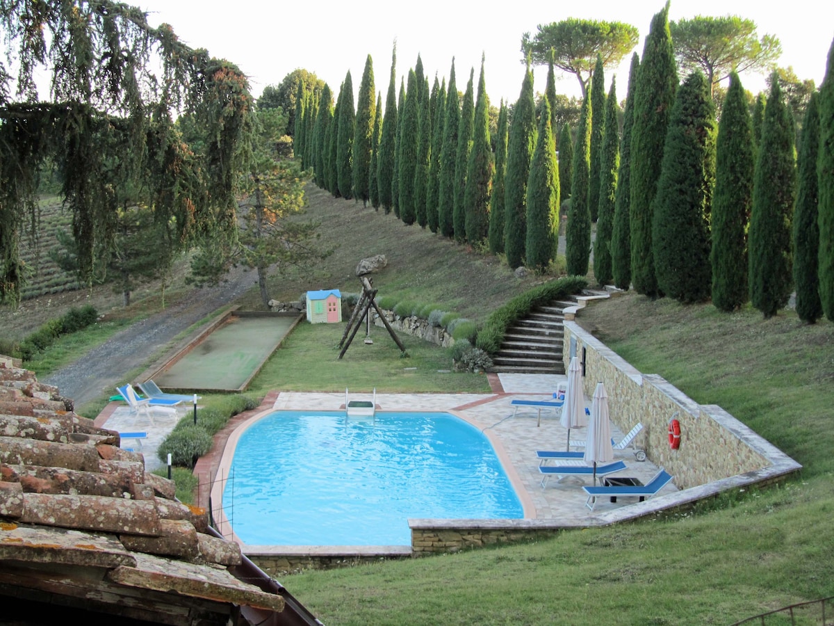 Villa Gourmet Typical farmhouse in the heart of Tuscany with 6 bedrooms that can comfortably accommodate up to 14 guests. - Exclusive saltwater infinity pool - Gourmet cuisine - Large garden with private parking - Two Free Charging Station (3,75 KW) - Veranda with table and Weber barbecue by the pool - Children's play area and table tennis - Football pitch - Home Restaurant service available - Cooking class and pizza workshop using a wood-fired oven - Shuttle Services