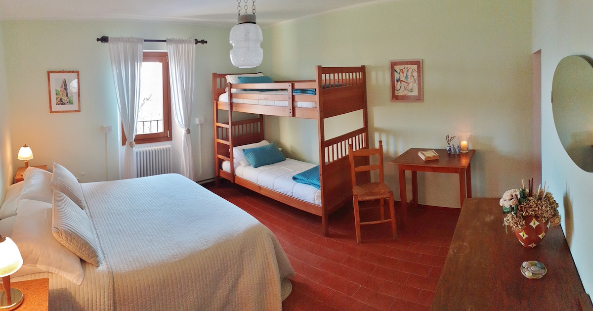 La mangiatoia, camera ricavata in un'antica stalla, è composta da letto matrimoniale e singolo, ampio bagno con doccia ed è provvista di frigo bar e uso della wi-fi.