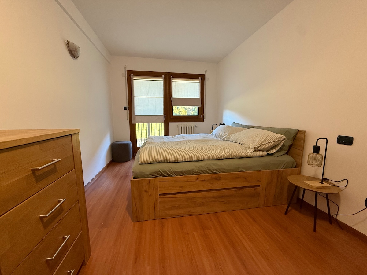 Luminoso ed esclusivo! Nella migliore posizione di Aviano. Arredato con stile e finiture pregiate. Ampia camera matrimoniale, king-sized bed, materasso e cuscini in memory foam. Ampio open-space salotto e cucina a vista con TV 50" UHD 4K, divano 3 posti con chaise lounge comodissimo, divano letto a doghe in legno, WiFi, luci led per una atmosfera lounge, cucina completa con Nespresso ed lavastoviglie, AC, zanzariere, lavatrice. Set di benvenuto e amenities di cortesia inclusi. Buon Soggiorno!!