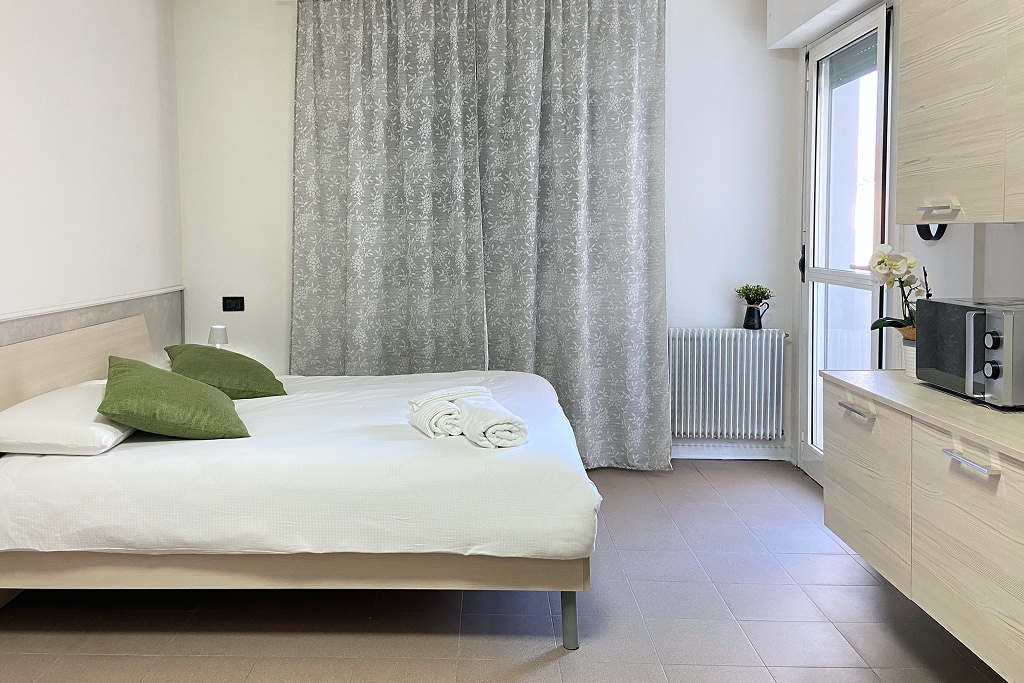 Comodo monolocale che ti permetterà di godere di momenti di relax e tranquillità tra i vari appuntamenti della città. La Suite TIME è all'interno di Residenza JOY un'edificio messo a nuovo di poche unità abitative. Comodo per raggiungere l'ospedale, la fiera o altri punti di interesse. N.B. È elegante e raffinato MA si trova la terzo piano senza ascensore, si dovranno fare ben 47 gradini, comodi ma pur sempre 47. Quindi attenzione a chi ha difficoltà di deambulazione tenetelo in conto