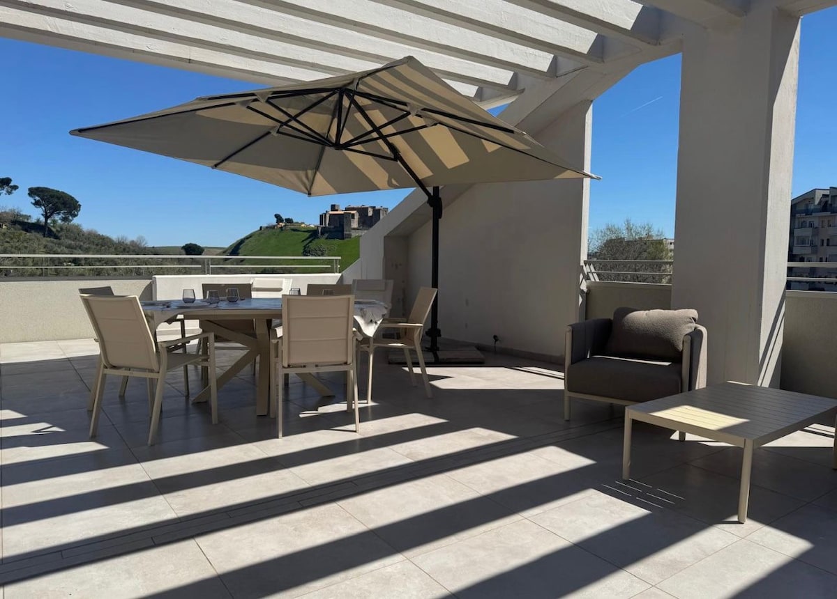 Attic for rent: Newly Built, beautifully furnished a few steps from the sea, 1 bedroom with spacious walk-in closet, 2 sofa beds for a total of 4 beds, 1 bathroom, open space with living room and kitchen, large terrace with breathtaking views, garden, private parking , air conditioners, radiators, Smart TV, dishwasher, washing machine and Wi-fi. Unique occasion! Contact at any time of day! You could easly visit all the fantastic and famous land: Cilento!
