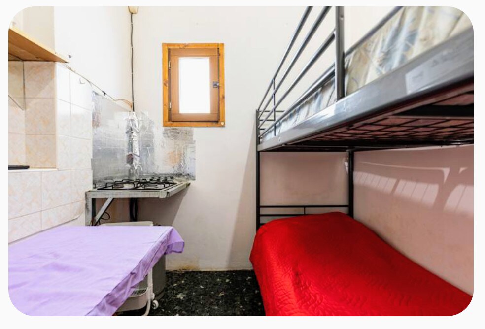Posto letto con altra persona in camerata , ambiente accogliente. Check on line OBBLIGATORIO prima di entrare in struttura. NO DEPOSITO BAGAGLI. NON FORNIAMO ASCIUGAMANI PERSONALI. CHECK IN DOPO LE 4 PM . LA CAMERA VA LASCIATA DURANTE LA MATTINATA ENTRO LE 10 AM PER RIPULIRE E SI RIENTRA DOPO LE 4 PM. CHECK OUT ORE 10 AM IL GIORNO DI USCITA. NB: ARIA CONDIZIONATA A PARTE A PAGAMENTO-
