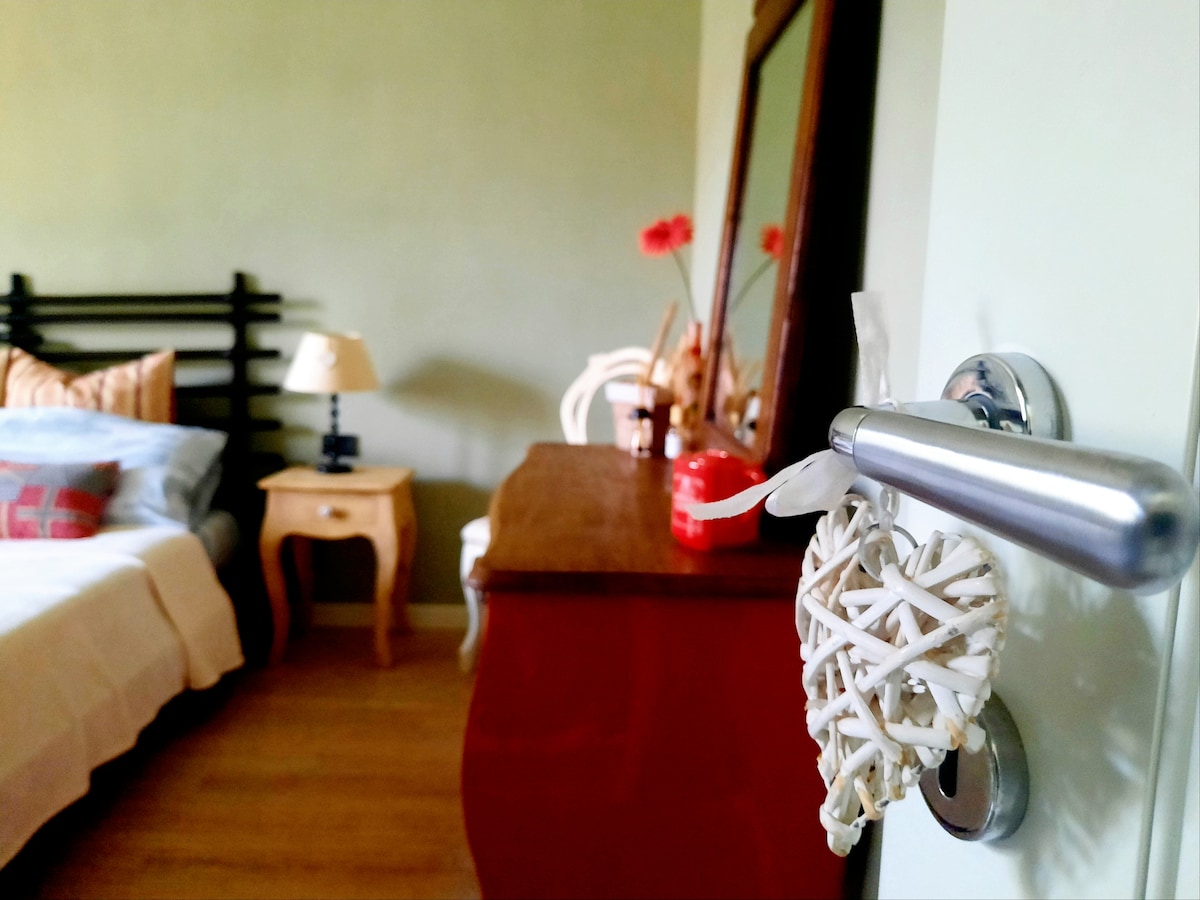 Dimentica ogni preoccupazione in questa ampia oasi di serenità. Siamo 4,5 km da Pistoia-centro, in campagna, area verde, silenziosa, rilassante. Grandi spazi aperti intorno, panorama collinare davanti a noi, l'appartamento è ampio e spazioso, composto da 1 camera matrimoniale con letto grande, armadio, comò, comodini, finestra a 4 ante insonorizzata, zanzariera; bagno privato con doccia, vasca, bidet, lavabo, finestra con zanzariera; grande cucina completamente attrezzata. Ingresso indipendente