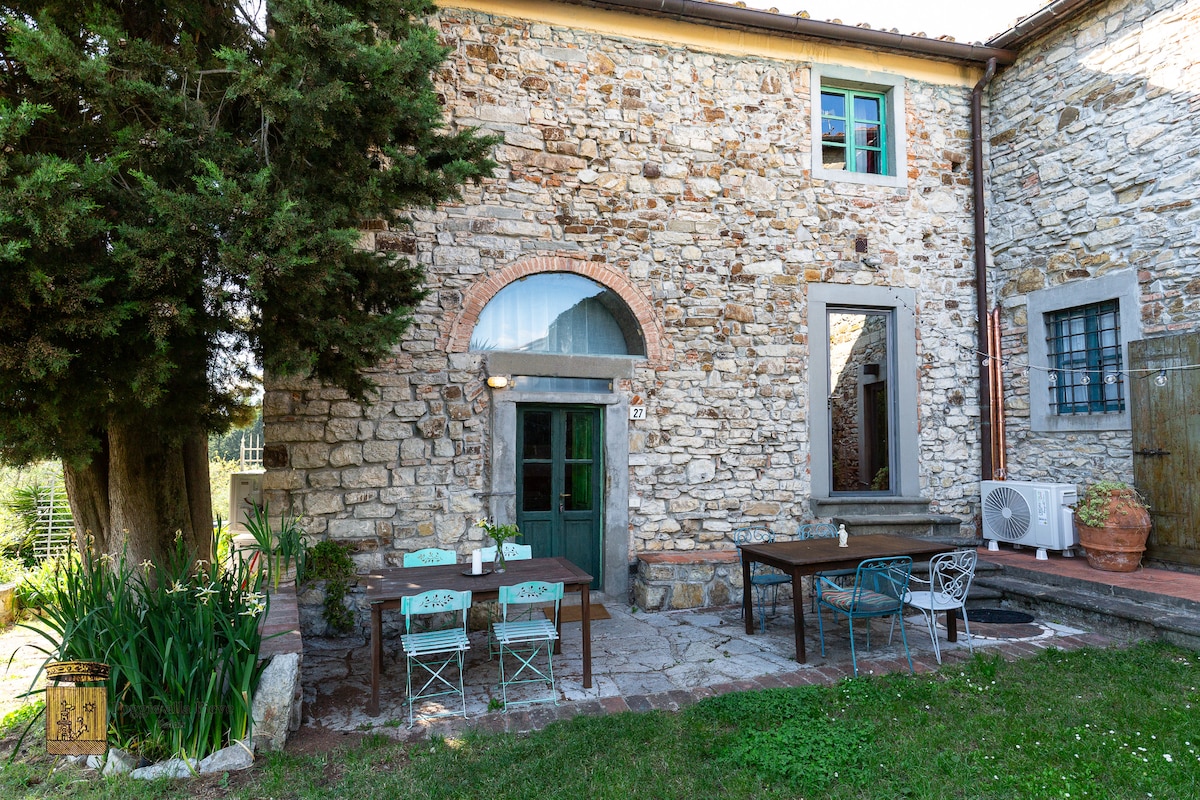 Situata in un piccolo borgo villa indipendente in pietra con giardino su 3 lati che degrada verso il torrente. E’ disposta su tre piani per un totale di 210mq ed è stata sapientemente restaurata e arredata da pezzi dell’antica tradizione toscana.