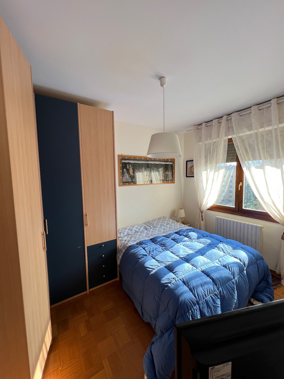 Stanza mansardata, ampia e tranquilla con bagno privato. Non è indipendente, si accede dall'ingresso posteriore di casa mia. Dispone di letto matrimoniale, letto a una piazza e 1/2, aria condizionata, tavolo, frigorifero, microonde, bollitore. Non ha cucina e non ha balcone. Fornisco io : lenzuola, asciugamani, shampoo e prodotti per la prima colazione. La cucina non è disponibile. È richiesto all'arrivo un contributo pulizie da 10,00 euro a 30,00 euro in base alla durata del soggiorno.