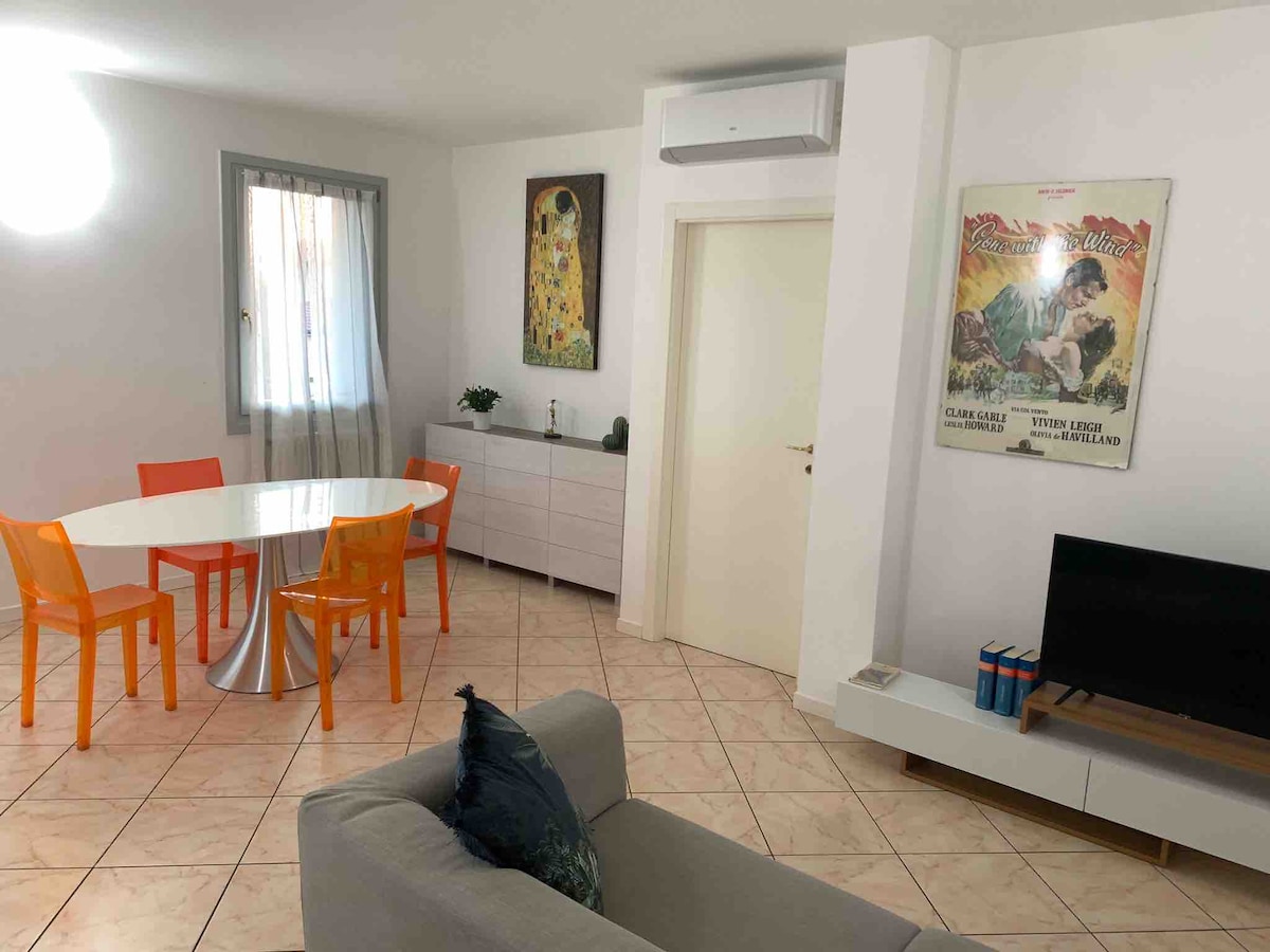 The apartment is located within the historic center of Ravenna, in the pedestrian area, and it's surrounded by cafes, restaurants, groceries and boutiques. The train & bus stations are a 15 minutes-walk away from the house. All the main monuments (UNESCO heritage) and attractions are within walking distance. -The Master and the Double bedrooms only are equipped with AC units -