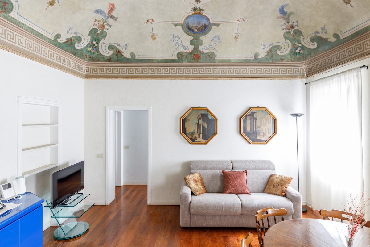Experience the charm of a historic residence in the heart of Ravenna! This home welcomes you with a stunning 18th–19th-century frescoed dome. A short walk from the station and the UNESCO monuments of the historic center. In a quiet, strategic area ideal for work or leisure, close to restaurants, cafés, supermarkets, and a pharmacy. Well connected by bus to reach the beach.