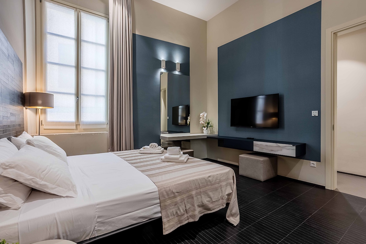 Lovely apartment on Viale dei Mille with 2 double bedrooms, one with a freestanding bathtub and private bathroom and one with terrace access, plus 1 bathroom and a living area with kitchenette. Equipped with Wi-Fi, Smart TV, Netflix and chromotherapy. Also available for exclusive use. Close to the historic center near Piazza Fontanesi.