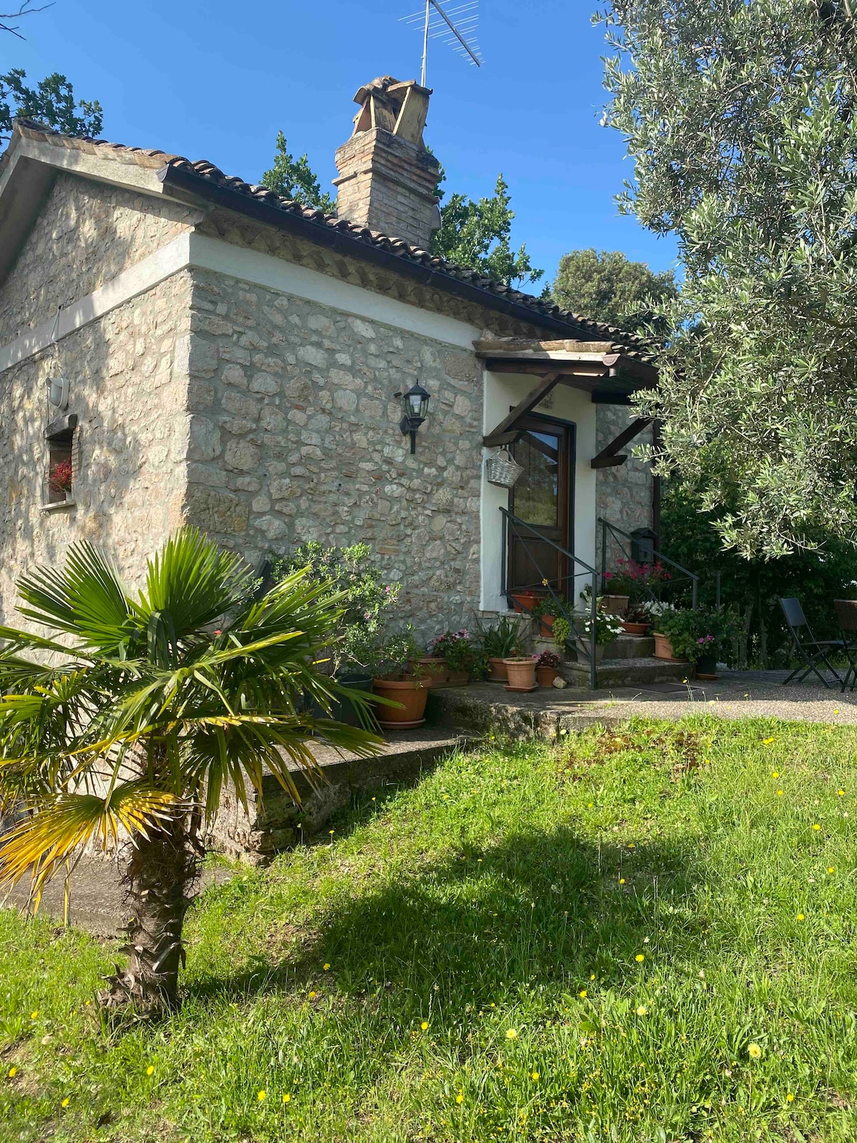 Casaletto in pietra indipendente immerso tra gli ulivi delle colline sabine in un atmosfera unica come in un oasi di pace al contatto con la natura ma a 600 mt dal centro di un caratteristico paesino di 240 persone. A pochi passi dai resti della villa romana di Orazio e a pochi km da altri scavi archeologici non meno importanti. A meno di 1 km dal bosco Pago tanto amato dalla Dea Vacuna , a 15 minuti di auto dall'uscita della A1 Ponzano/Soratte, a 70 km/h da Roma, 30 da Rieti e idem da Terni