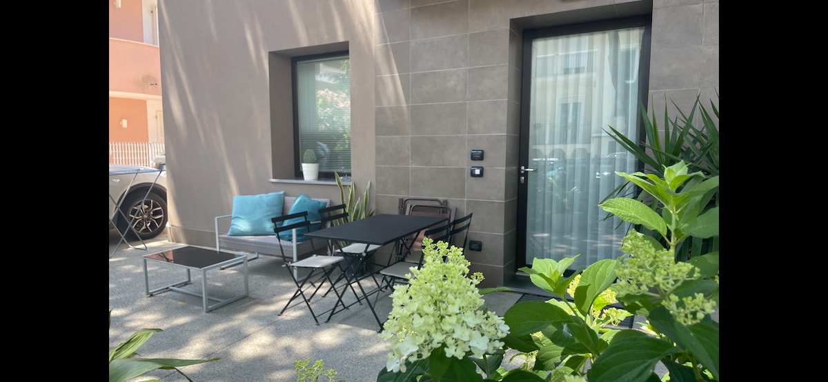 Appartamento con finiture di pregio a soli 100 metri dalla spiaggia di Rivabella di Rimini. La nostra struttura gode di una posizione invidiabile per chiunque ama la comodità in vacanza o per lavoro. - Situato al piano terra - 100m dalla spiaggia - 2 km dal centro storico - 3,5 km dalla fiera di Rimini - 1 km dalla Darsena Nel grande terrazzo, dotato di 2 sdraio e un ampio tavolo con sedie, potrete vivere i vostri pasti all’aperto, assaporare aperitivi o drink con una splendida vista