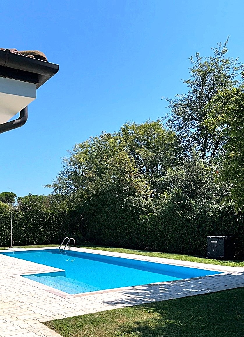 Isola di Albarella: Elegante Villa singola con piscina con vista sulla laguna orientata al tramonto. All’interno ospita 4camere da letto spaziose , 3 bagni con doccia , una luminosa cucina con salotto e ampie vetrate per garantire una magnifica vista sulla piscina. All’esterno giardino recintato con piscina a sfioro e barbecue. All’ultimo piano un affascinante terrazzo con giardino verde e salottino per colazione o aperitivi rilassanti.