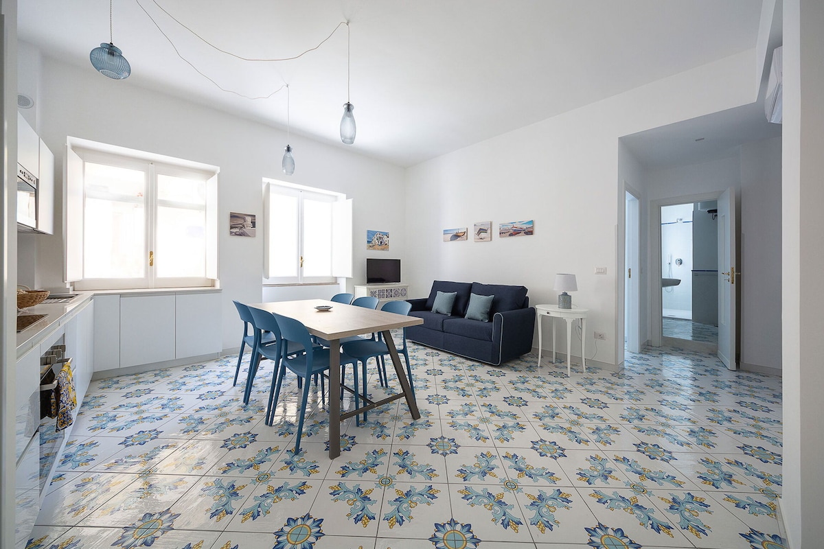 Chiesa Nuova (grande) is a large and bright apartment located in the center of Positano, precisely near the famous parish from which it takes its name, in a quiet and central area. Ideal for trips with friends or family, this apartment can accommodate up to 4 people. A few meters from the apartment you can find the famous 'Bar Internazionale' and various restaurants and shops. A few steps from the apartment you will find the bus stop (Chiesa Nuova) to reach Sorrento or Amalfi (sita bus).