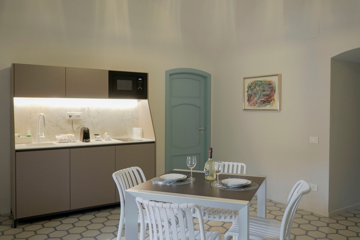 Suite Dorotea is an elegant apartment immersed in the tranquility of nature, a short distance from Salerno. It is a 10-minute drive from the Historic Center and is equipped with no less than two Swimming Pools! Indulge in pure relaxation in your own Private Sauna Area, a true exclusive wellness luxury. Kitchenette, modern bathroom and reading area overlooking the sea are available. Perfect for those who want to visit Salerno and the Coast while indulging in moments of relaxation!
