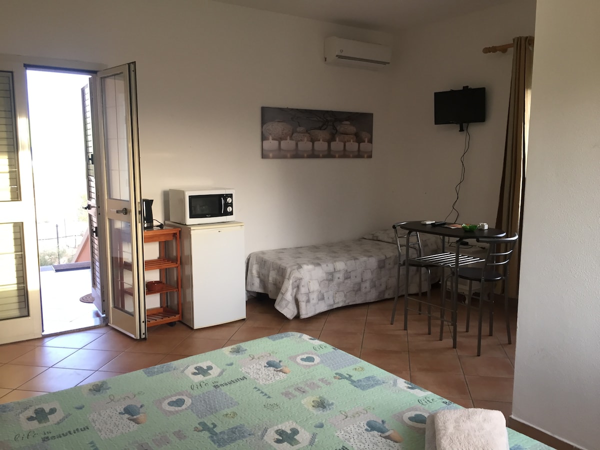 In villa immersa nel verde con spettacolare vista mare, Loft indipendente, perfetto per vacanza all'insegna del relax, ideale anche per Smart Working, con free WiFi e ampio tavolo vista mare! Luminosissimo, con bagno privato, 3 ampie verande con amache e vista sul parco marino di Capo Ceraso e sull'isola di Tavolara. TV satellitare 34 pl, condizionatore, area cottura leggera separata, lavabo, frigorifero, microonde, tostapane, bollitore. Dotato di 2 ampi divani letto super comodi.