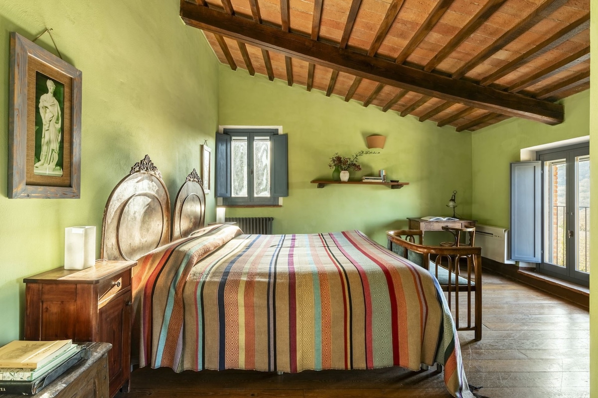 Stanza matrimoniale con elementi di arredo unici, perfetta per visitare il piccolo borgo di Pienza, costruita come città ideale. Sarà a vostra disposizione un minibar, televisione e un bagno privato. Lato strada.
