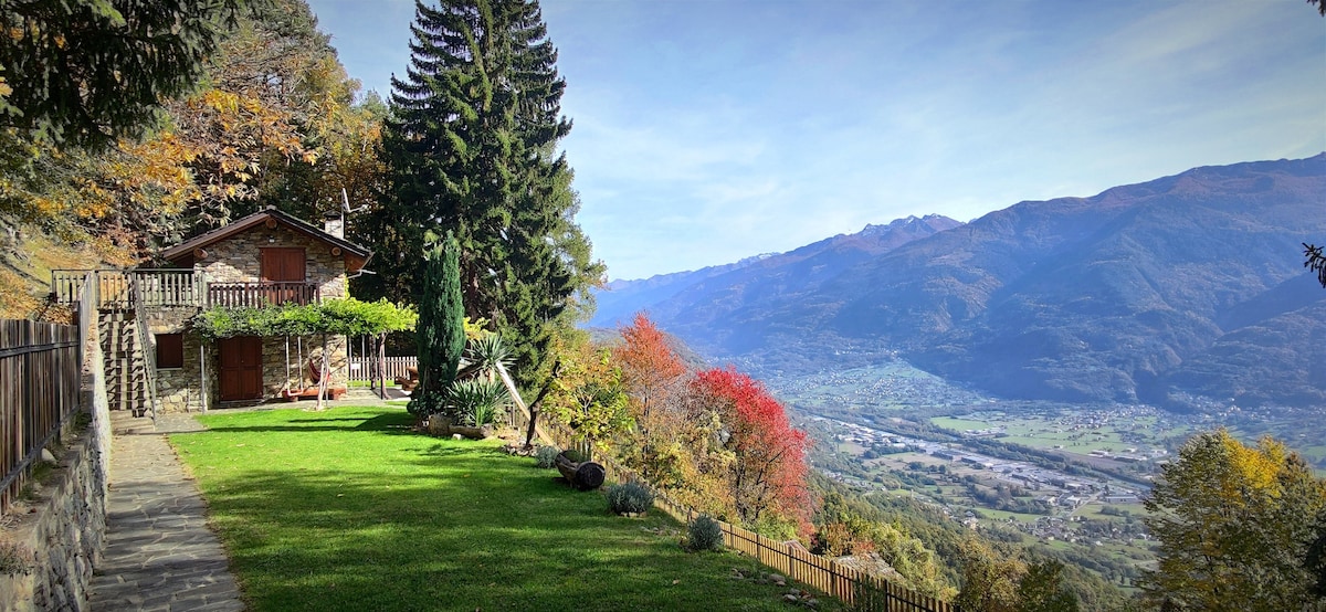 Baita ai confini della Riserva Naturale Le Piramidi di Postalesio. Intera casa dotata di ampio giardino recintato, cucina, soggiorno e bagno con doccia.Camera al piano superiore con letto a castello matrimoniale e possibilità di un lettino per neonati.All'esterno barbecue a legna ed uno spazioso tavolo all'ombra di un pergolato di vite e glicine. Ideale per un soggiorno immersi nella natura in pieno relax! NOVITA'! Possibilità di noleggio e-bike in loco per esplorare bellissimi sentieri.