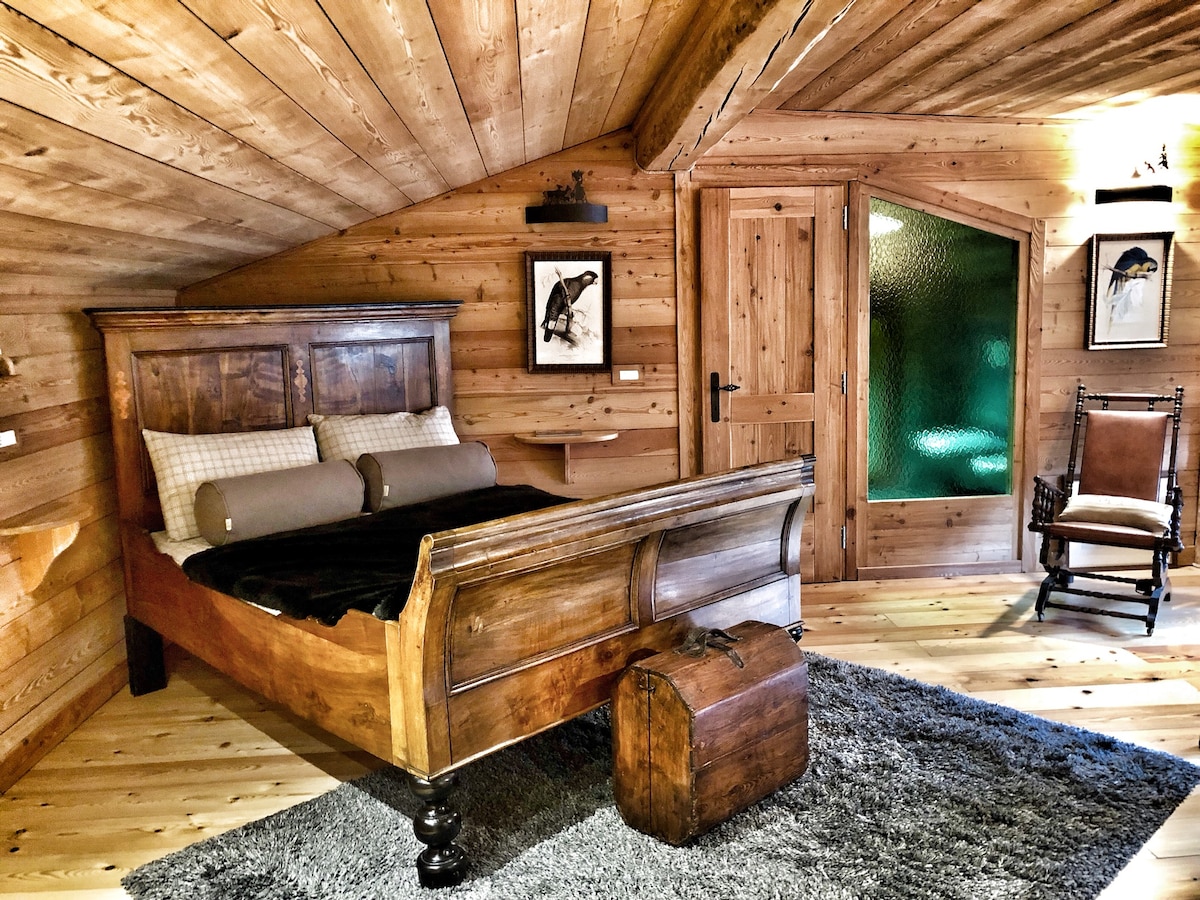 Ideale per coppie o famiglie fino a quattro persone, questa baita unisce tradizione e comfort moderno. La camera con soffitto alto offre un letto queen size con lenzuola in cotone bio per un riposo ottimale. Disposta su due livelli, include un soggiorno luminoso, bagno con sauna privata, ampia terrazza con tinozza a legna e un angolo lavoro con vista panoramica. La colazione inclusa fatta in casa con prodotti biologici completa l’esperienza, per iniziare la giornata con sapori autentici.