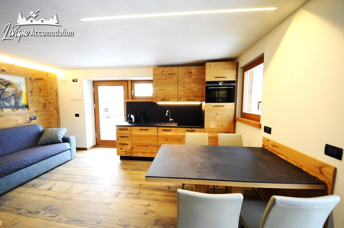 CIR: 014037-CNI-00893 CIN: IT014037C2NQO3RVEZ Nuovissimo appartamento in uno chalet immerso nel verde in una delle zone più esclusive di Livigno a due passi dal centro e dalle piste da sci. Vista mozzafiato sulla valle e giardino privato. Gli ospiti potranno rilassarsi dopo una giornata di sport davanti al camino o nella sauna dello chalet.