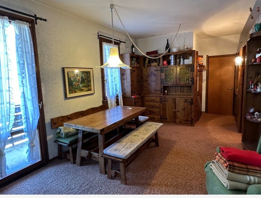 Se sogni una vacanza immersa nella natura, la posizione di questo appartamento è la scelta perfetta per te! Vicinissimo agli impianti di risalita, è ideale per famiglie o gruppi di amici e per vivere a pieno la montagna. - sala da pranzo con divano, divano letto e poltrona. -angolo cottura (piano induzione, forno, frigorifero...) -camera con due letti a castello (4 letti) -camera con letto matrimoniale a scomparsa -bagno con vasca e lava asciuga. Box privato coperto/deposito sci.