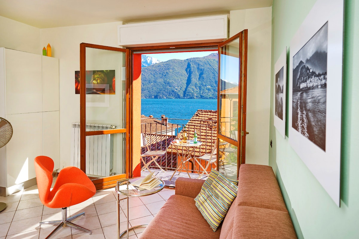 Panoramic Lakeview apartment 2 people. Beach. Remote working. Balcony.FastWiFi. Charging point electric cars. Free parking. Private garage space included in july-august. Private covered space for placing bikes. Queen size-Bed,SmartTv Netflix/YouTube,Washing machine,Nespresso machine,Ceiling Fan,Desk Bathroom fully equipped. Kitchen:window,2 burner ceramic,fridge/freezer, microwave,airfryer,oven,bar table At 50m:2 restaurants,2 coffeebars,1 salad bar, boat/bike rental,groceries, busstop,wineshop