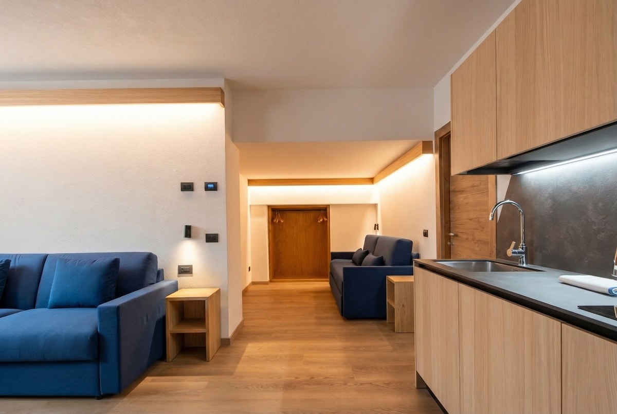 A mountain‑wood apartment surrounded by greenery. Alpen is a modern and refined retreat, created for those who wish to slow down, breathe deeply, and be embraced by the warmth of the Alpine atmosphere. Every detail is designed to make you feel special: a place to reconnect, enjoy nature, and create unforgettable memories. Perfect for those seeking authenticity, tranquillity, and moments to share with the ones they love.