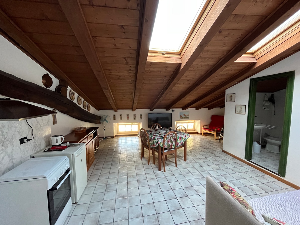 Accogliente Mansarda di 70 mq. con vista Panoramica della Valmalenco. A due minuti di auto dalla partenza degli impianti del comprensorio sciistico. Alloggio ideale come campo base per varie tipologie di escursioni adatte a principianti ed esperti (escursioni, itinerari naturalistici, rifugi alpini ect.). La casa è munita di tutto il necessario per il soggiorno (WIFI inclusa), accesso autonomo e posto auto riservato gratuito.