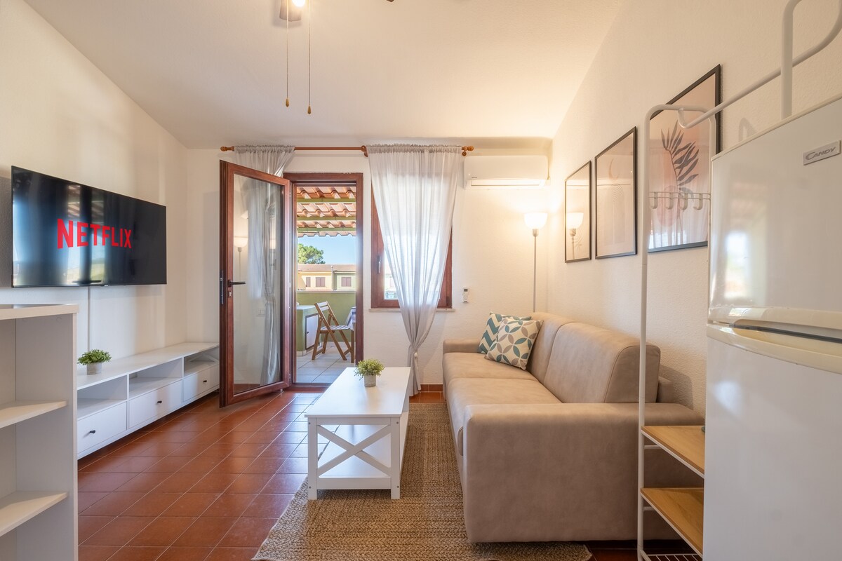 Functionally furnished apartment suitable for travelers from all over the world. 5 min walk to the Tourist Port of Capitana and a few minutes more to the beach of the same name. Large veranda equipped with table and chairs, living room with kitchenette and full kitchen, sofa bed to accommodate up to 4 people. Full bathroom. Master bedroom with additional balcony. Perfect location to reach wonderful beaches such as Mari Pintau, Torre delle Stelle and Villasimius