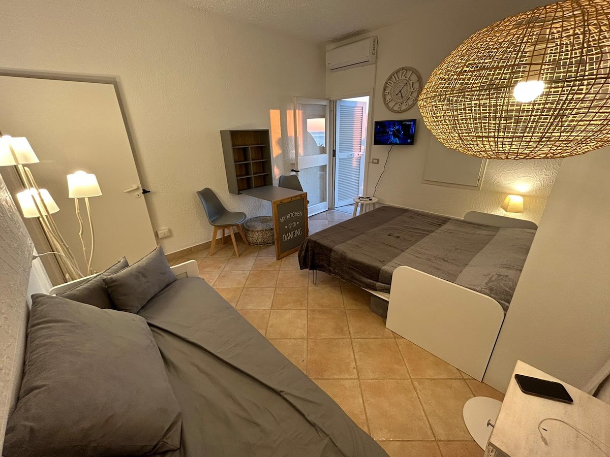 Questo alloggio è davvero unico nel suo genere. È un monolocale con 4 posti letto TV- ARIA CONDIZIONATA-ZANZARIERE angolo cottura attrezzato, una grande cabina armadio dotata di cassetti ed appendiabiti, e lo spazio DOVE RICOVERARE PURE VALIGIE E TROLLEY. Un grande bagno con comoda DOCCIA e LAVATRICE. Un terrazzo con vista TRAMONTO mozzafiato attrezzato con tavolo e sedie, sdraio RELAX e tavolino.
