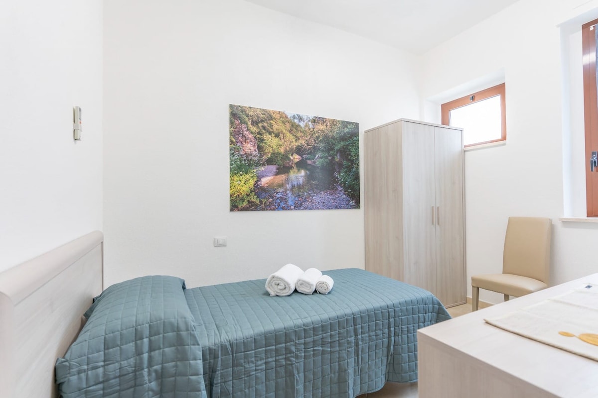 Exclusive location in Cagliari: just steps from train and bus stations and the main street, with a window overlooking the Port. The room, perfect for both work and relaxation, features TV, wardrobe, desk, air conditioning/heating, kettle and coffee machine. Direct access by elevator. Nearby you’ll find all essential services and plenty of choice: supermarkets, cafés, pizzerias, restaurants and fast food, all within easy walking distance.