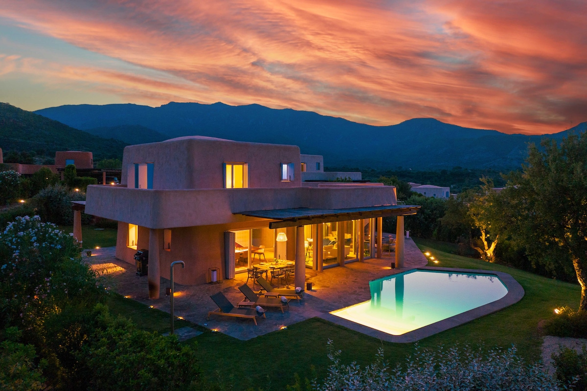 Terracotta walls undulate beneath a banner of sky at this sweeping, curving, statement-making villa, sheltered by the mountains in southern Sardinia. It stands on the grounds of Is Molas, a contemporary resort designed with the aim of making “sculptures to live in,” and its views encompass acres of countryside rolling down to the sea. Drive to beaches and the ancient-but-vibrant city of Cagliari. The villa’s walls wrap around a sun-splashed courtyard, where the sky beams back from a reflecting pool, and a solid-wood deck on the rooftop, whose views stretch to the mountains and sea. Those same mountains absorb north winds, so there’s plenty of warm weather to savor in the freeform swimming pool and shaded alfresco living area. Glossy tile bounces sunshine and seamless cabinetry conceals doors, playing with light and space in rooms laid out by Fuksas Design. At the villa’s heart is an open-plan great room with a living area, dining area, and fully equipped kitchen. There are 2 bedrooms in the main house, and 2 in separate pavilions across the courtyard. A setting on the Sardinia coast means the climate is Mediterranean and mild—ideal for getting out to hike or bike nearby nature parks or play a round or 2 on the Is Mola golf course. Nearby museums boast collections ranging from ancient artifacts to contemporary art, and nearby beaches offer sandy shores and clear emerald waters. Copyright © Luxury Retreats. All rights reserved. BEDROOM & BATHROOM Main House • Bedroom 1 - Primary: King size bed, Ensuite bathroom with bathtub, Bidet, Television, Safe, Direct access to terrace, Mountain view • Bedroom 2: King size bed, Ensuite bathroom with stand-alone rain shower, Bidet, Television, Direct access to shared balcony Guest House • Bedroom 3: King size bed, Ensuite bathroom with bathtub, Bidet, Television, Safe, Direct access to terrace • Bedroom 4: Twin size bed, Ensuite bathroom with stand-alone rain shower, Television, Direct access to terrace • Bedroom 5: Twin size bed, Ensuite bathroom with stand-alone rain shower, Television, Direct access to terrace FEATURES & AMENITIES • More under “What this place offers” below Included • Airport transfer to and from Elmas airport with personal assistance (included with a monthly booking) • 1 lunch at the Is Molas Gourmet Restaurant (included with a monthly booking) • 1 cocktail at the Club House or pool of the Hotel Is Molas (included with a monthly booking) • More under “What this place offers” below Extra Cost (advance notice may be required): • Activities and excursions • More under “Add-on services” below
