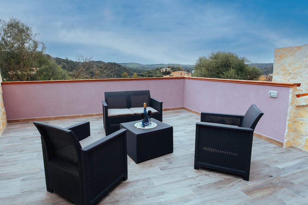Panoramicissimo appartamento a pochi metri dal mare. Ideale per gli amanti della tranquillità, della natura, macchia mediterranea e per godere appieno della bellezza del mare. Cucina abitabile, due camere matrimoniali, di cui una con bagno privato, 1 camera con due letti, bagno con doccia. Patio coperto attrezzato per consumare i pasti e soggiornare all'aperto. Doccia esterna, barbecue portatile, posto auto all'interno della proprietà.