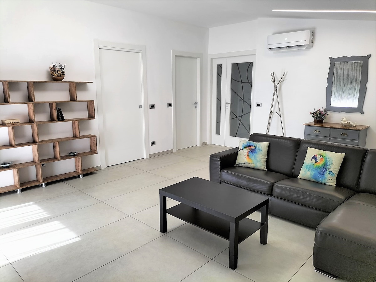 Appartamento con camera matrimoniale, sala soggiorno, divano letto, cucina, bagno, balcone vista Maiella , mare Adriatico. I locali sono situati al piano terra di un villino immerso tra gli ulivi nella collina di Città Sant'Angelo , uno dei Borghi più belli d'Italia a circa 10 km dall'uscita della A14 di Pescara Nord. L'altra unità abitativa del villino è occupato dal proprietario. Ideale per un rilassante soggiorno tra spiagge e montagne.Tassa di soggiorno pari a E.1,50 a persona max 10 g.