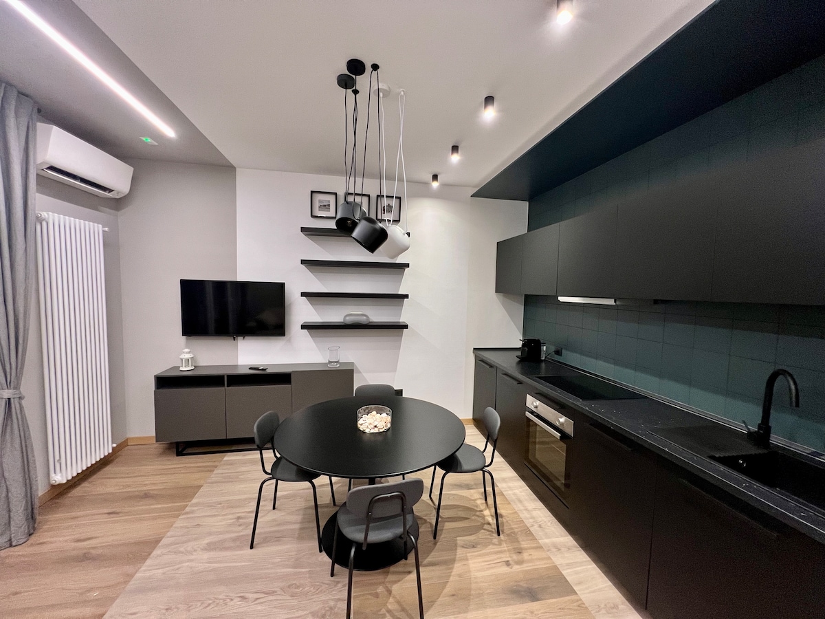 Elegante ed esclusivo appartamento di 115 mq con soffitti alti, posto al terzo piano con ascensore, in pieno centro storico a Teramo, a pochi metri dal corso principale di Teramo. Amplio salone, soggiorno con grande tavolo da pranzo, cucina abitabile con zona colazione e pranzo, camera con due letti singoli, bagno in marmo con doccia, suite padronale con bagno privato con vasca, doccia e cabina armadio. Arredato con attenzione ai dettagli e dotato di biancheria letto, bagno e cucina.