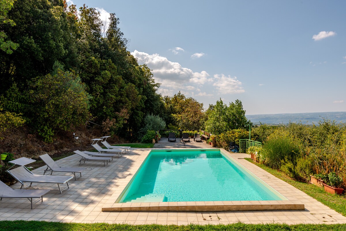 Welcome to our beautiful Italian villa designed by a famous Italian stage designer. Unobstructed panoramic views over the Umbrian countryside. Enjoy complete relaxation, privacy and peace with friends and family by the 12 meter pool or underneath the 200 year old oak tree. Large farmhouse style kitchen, herb garden, pizza oven and large garden with olive and fig trees. Located in Toscolano, Umbria with two excellent restaurants and food market - perfect for exploring southern Tuscany and Umbria.
