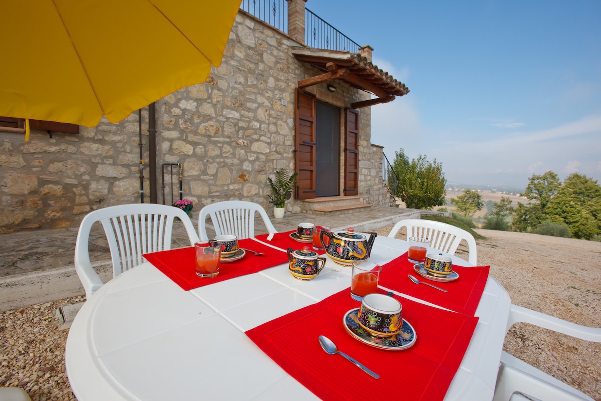 Agriturismo Mori Vigna, a little farmer house plunged in nature. Near the village of Palazzone, has a peaceful position overlooking the valley below and gives to the guest a timeless feeling of existence. A relaxing hot tub (heated) allows you to enjoy the view even in the winter months. Heating and electricity costs are included only for rentals up to three days. From May 18 to September 7, the swimming pool shared with 2 other houses can be used High season min. 7 days