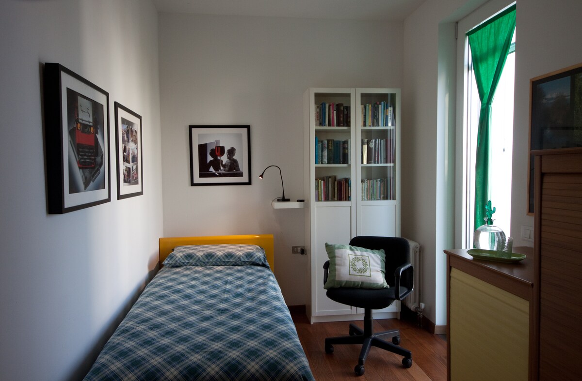 La camera offre un bagno interno solo per te. Questa camera ha WiFi veloce, TV, bagno interno, colazione e comodo parcheggio per farti sentire come a casa. Dispone di un letto alla francese largo ben 120 cm. Il bagno interno è dotato di doccia. Una ampia finestra si affaccia su un giardino. TV, WiFi, scrivania, largo parcheggio e colazione sono compresi.