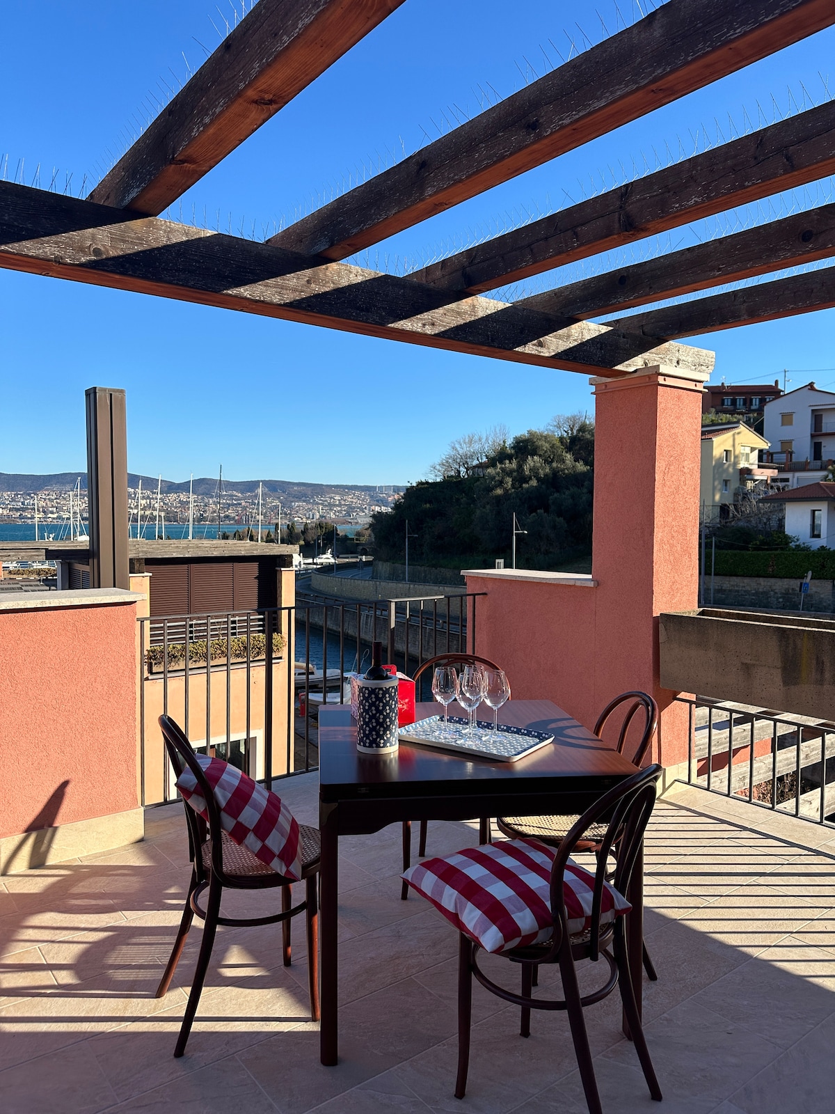 Klimatisiertes Apartment mit 3 Schlafzimmern und einem Wohnzimmer mit Balkon. Hier genießt du einen Weitblick über die Dächer von Triest. Den Tag mit einem Glas Prosecco auf dem eigenen Balkon ausklingen lassen! Das Zentrum ist nur wenige Bushaltestellen entfernt und es gibt 5 Buslinien. 2 Supermärkte sind 3 Minuten zu Fuß entfernt, 3 Bars und 2 Frühstückscafés sind auch gleich um die Ecke. Das Auto kann in der privaten Garage geparkt und mit einer eigenen Wallbox günstig aufgeladen werden.