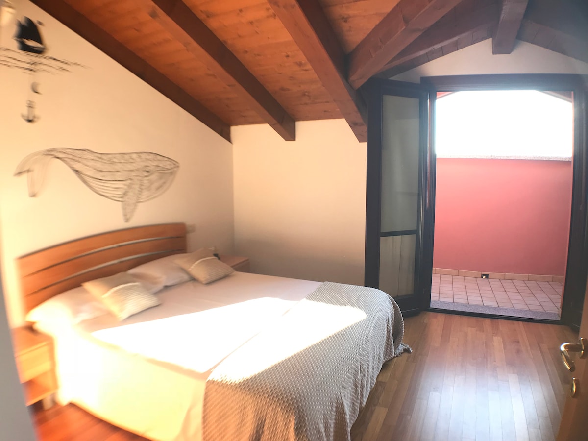 Uno splendido loft di 70 mq vi accoglie con un salone vetrato sul mare e la cittá. Intimo e silenzioso, ha una camera matrimoniale separata e un divano letto matrimoniale nella zona giorno, per ospitare fino a 4 persone. La cucina ha ogni comfort: lavastoviglie, microonde, macchina illycaffé, lavatrice. L'esposizione a Sud e il riflesso del mare regalano alla casa una luce calda e armoniosa, in estate l'aria condizionata regala sonni tranquilli. Parcheggio e terrazza vista mare e città. Unico!