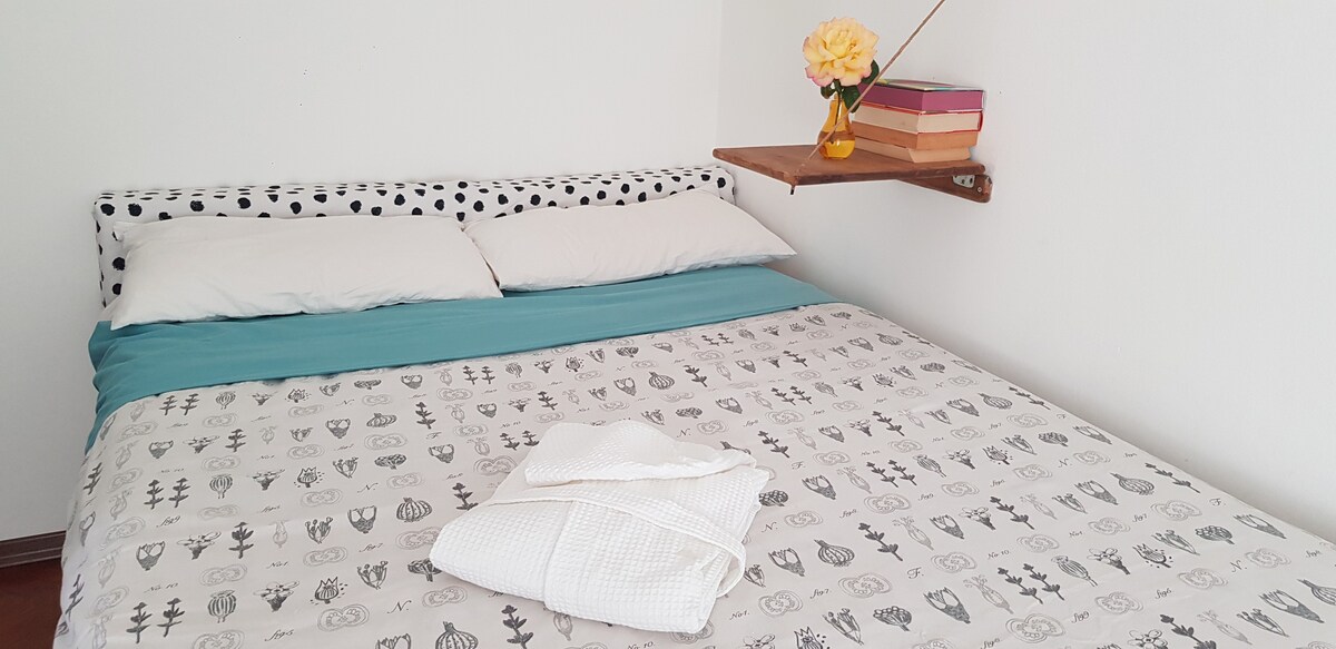 La stanza è grande e dotata di una scrivania, di un comodo divano letto a due posti e di un armadio per appendere e riporre i propri abiti. Di fronte alla stanza nel corridoio si trova il bagno ad uso esclusivo degli ospiti di questa stanza del B&B. The room is large and equipped with a desk, a comfortable two-seater sofabed and a wardrobe for hanging and storing your clothes. Just in front of the room there is the private bathroom.