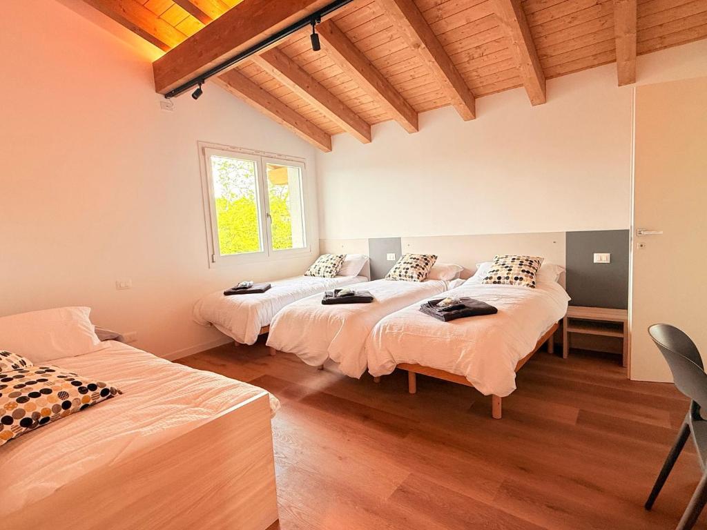 Siamo riusciti a ricavare da un vecchio casolare queste camere, calde e accoglienti, con tutti i comfort necessari per un soggiorno immerso alla campagna e nella tranquillità. Al secondo piano abbiamo potuto consevare le travi in legno già esistenti. Ogni camera è indipendente per quanto riguarda TV, frigo bar, aria condizionata e riscaldamento e wifi gratuito full time