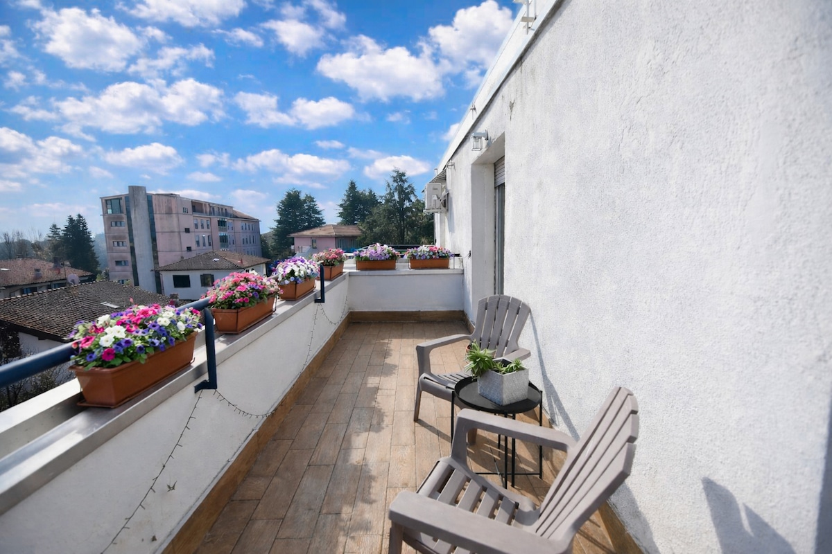 Residenza Luigi is an elegant and renovated apartment on the 5th floor of a Liberty style building in Varese city centre. You will step into a wide living and kitchen room full of light. Guests can enjoy a big master bedroom and a second bedroom with two single beds. The apartment has one bathroom, air conditioning and a private parking. You will find yourself right in the city center, full of gardens, coffee places and restaurants. Perfect for getting to know the area and all its wonders.
