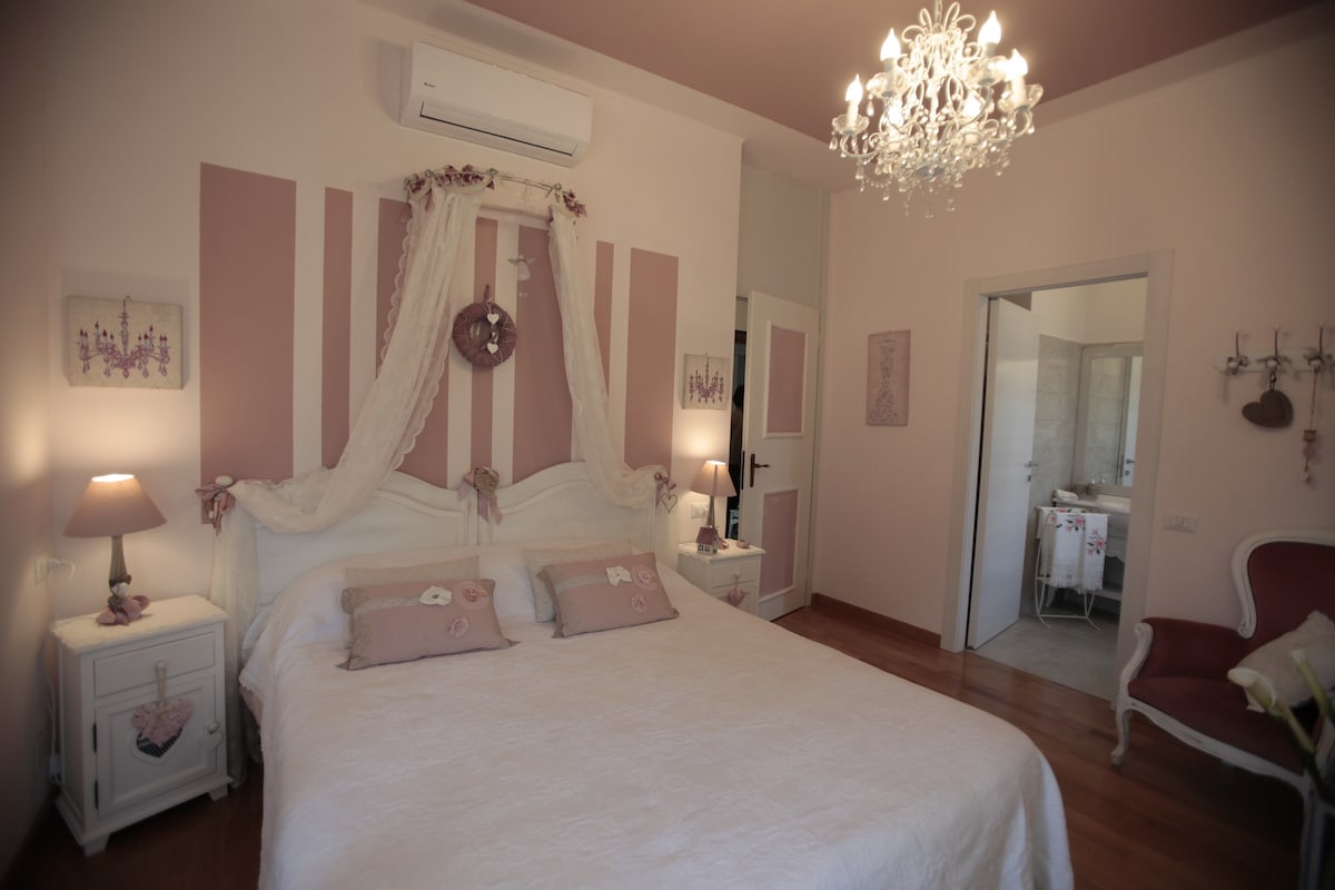 Our home is a beautiful villa d'epoca from the 1890's, with frescoes on the ceilings. There is a big garden and a swimming pool for the guests to use. We live in the house and have 3 different rooms available for our guests: check them from our profile! The Purple room has a double bed, but up to 2 single beds can be added on demand (for children only), please ask us! The bathroom is shared with other guests. * A simple breakfast is included