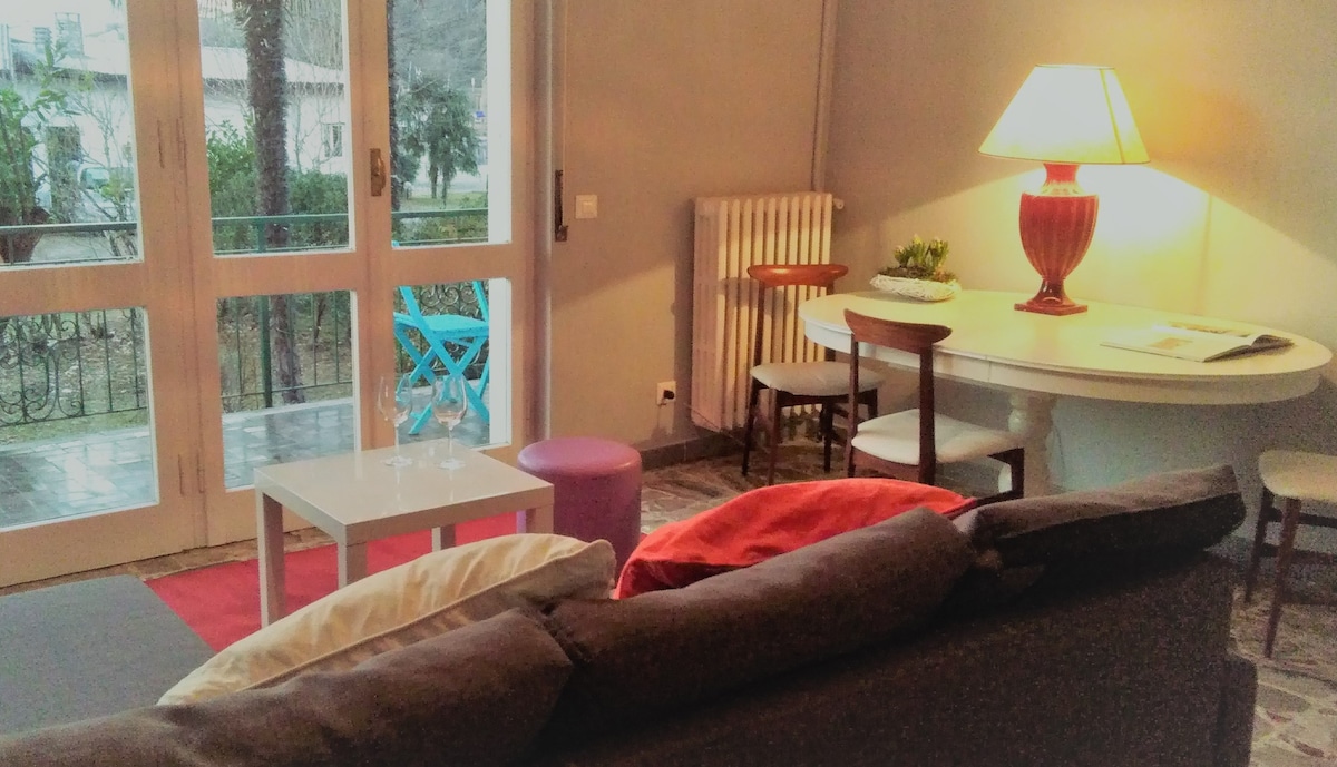 It's a modern apartment located at the first floor of a Villa Libertina, built in the early 1900s. The cozy aptartment, fitted for families, offers a wide open kitchen, two bedrooms, two tiny balconies and a bathroom with a big shower. Every room has its own air-conditioner. Right after the exit door there is a flowery private garden. The apt is very close to the lakeside, about 5 minutes by walking.