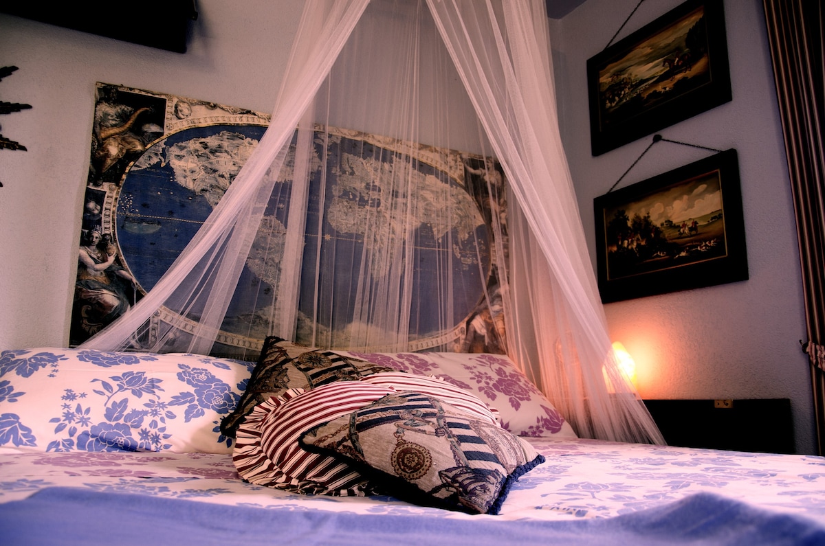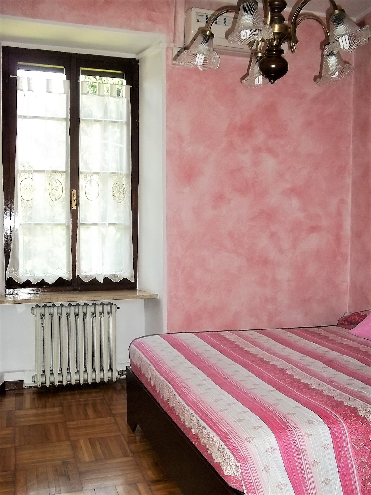 Our home is a beautiful villa d'epoca from the 1890's, with frescoes on the ceilings. There is a big garden and a swimming pool for the guests to use. We live in the house and have 3 different rooms available for our guests: check them from our profile! The Purple room has a double bed, but up to 2 single beds can be added on demand (for children only), please ask us! The bathroom is shared with other guests. * A simple breakfast is included