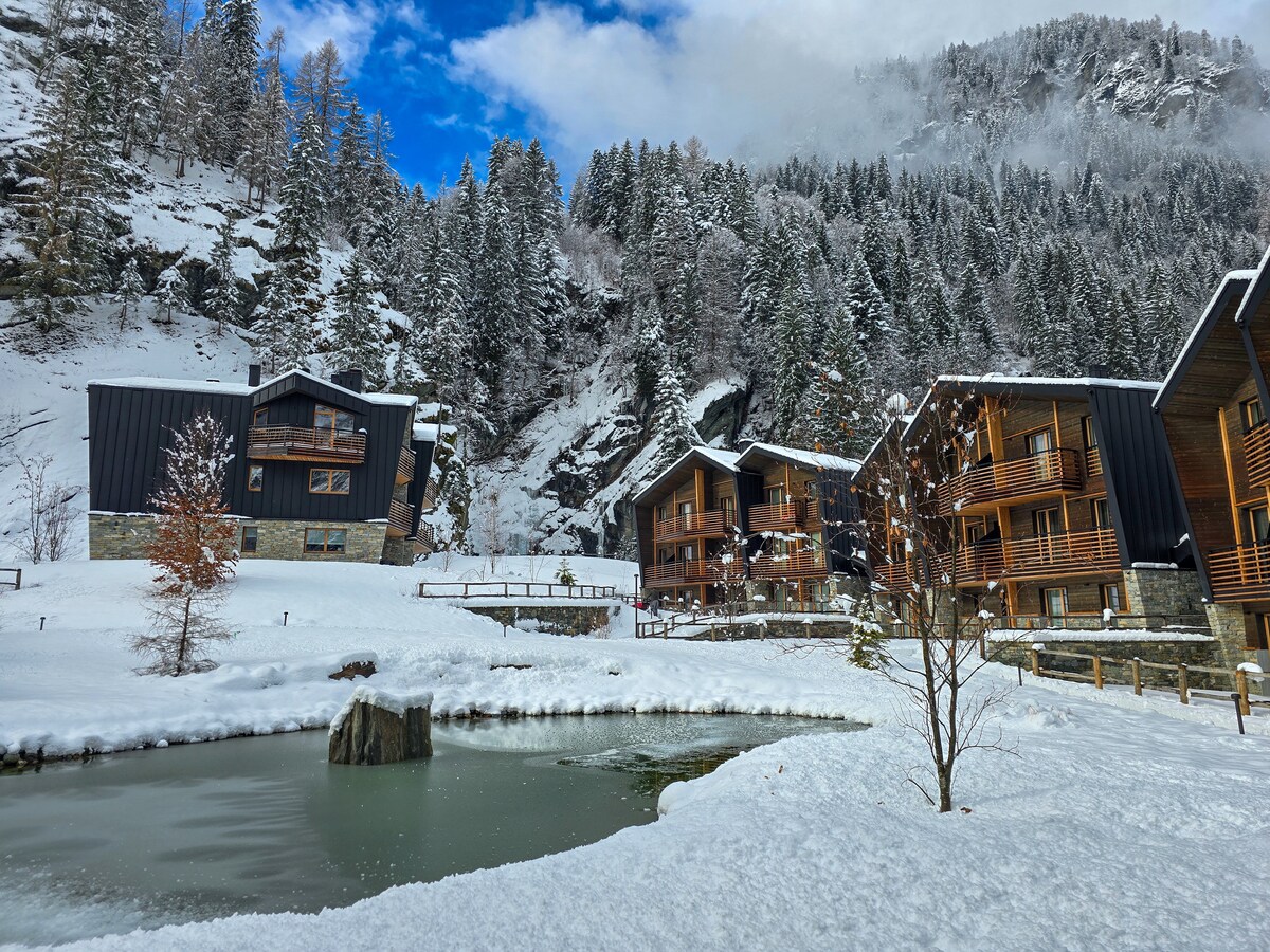 Lo chalet si trova nel centro di Alagna a 150 mt dagli impianti di risalita del Monte Rosa Ski. Appena ristrutturato, lo chalet rappresenta una fantastica occasione per godere del meglio di Alagna. Tra legni pregiati ed una sauna privata, impianti moderni, Wi-Fi e garage riservato, si ha il meglio di una vacanza estiva, o invernale, nella bellissima Valsesia. È perfetto per 5/6 persone, con tre camere da letto, due bagni splendidamente rifiniti ed una confortevole zona living con cucina.