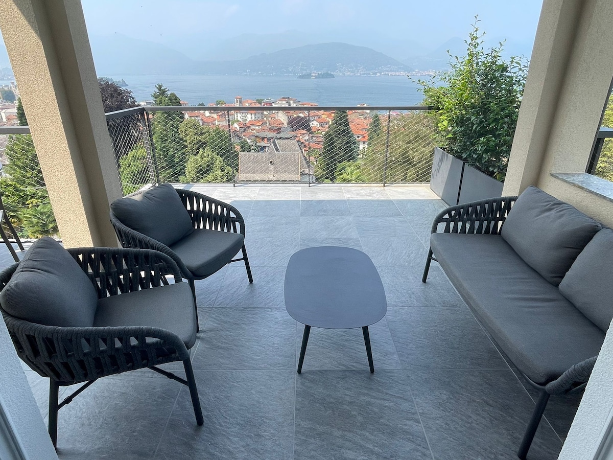 Exclusive apartment equipped with the best comforts and technologies with private garden that enjoys an exclusive position in front of Isola Bella, 80 m from the lake shore and the new municipal swimming pool. The location guarantees a unique and comfortable holiday in an apartment furnished with taste and refinement and equipped with a terrace and BBQ area.