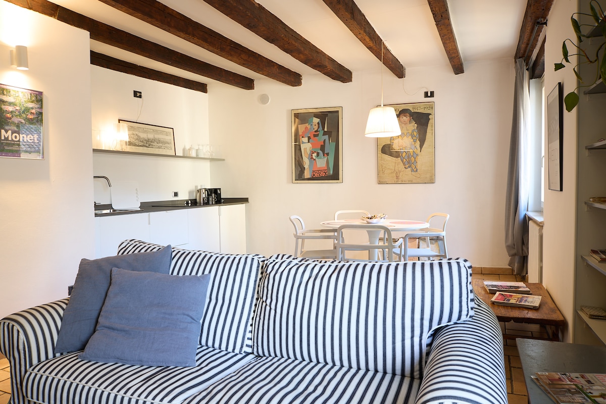 Appartamento intimo e silenzioso con ingresso privato. Centralissimo, ad un passo dai principali luoghi d'interesse. Si trova al piano rialzato ed è perfetto per chi non può o non vuole fare troppe scale e ama la comodità. Arredato con gusto moderno e completo di ogni comfort.