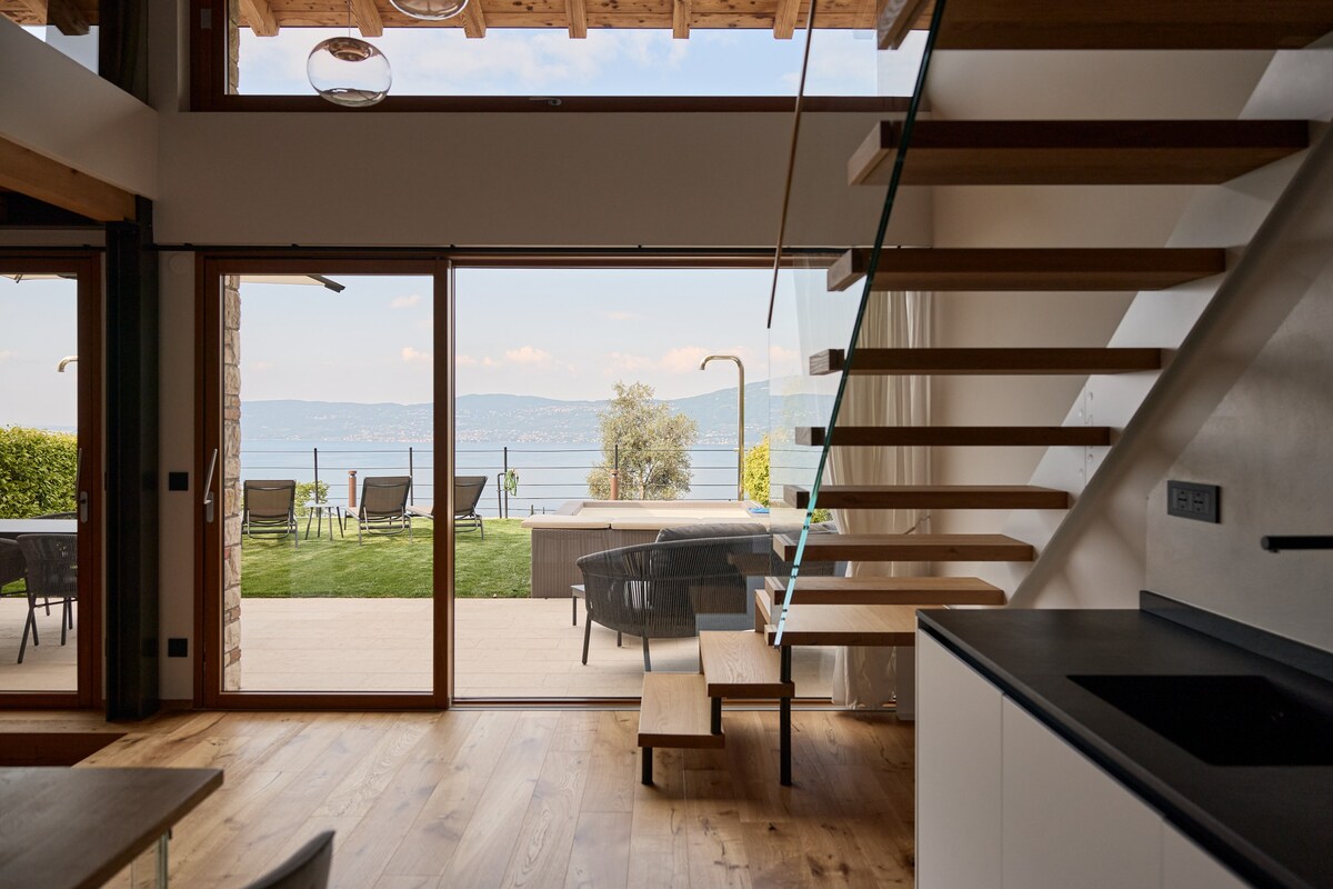The villa "Sirmione Lakefront" is located in Sirmione and offers a wonderful view of Lake Garda and the nearby beach. This elegant two-storey property consists of a living room, a fully equipped modern kitchen, 3 bedrooms and 2 bathrooms, and can accommodate up to 6 people. Amenities include high-speed Wi-Fi (also suitable for video calls), TV, air conditioning, coffee machine, dishwasher and washing machine. You have access to a private sauna, a private gym and fitness equipment.