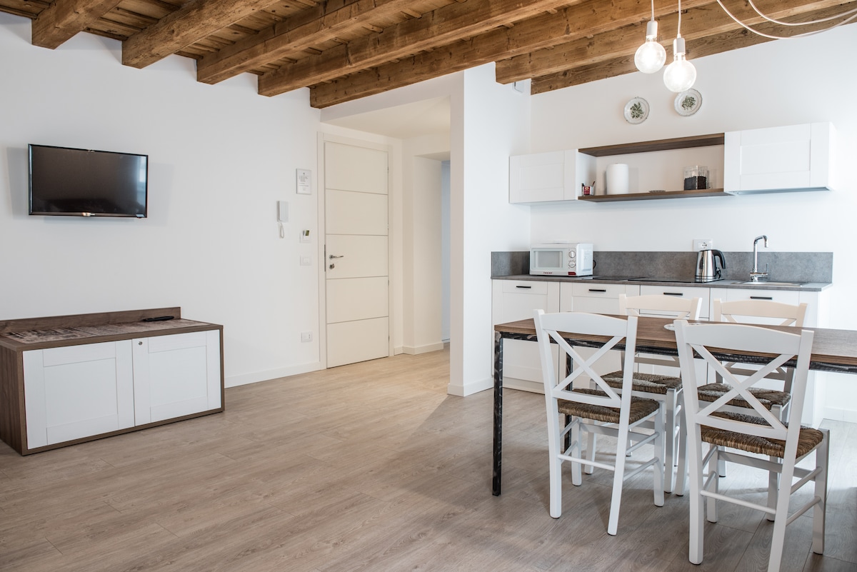 Attic in the Historic City Center – Steps from Verona Arena. Stay in the heart of Verona’s historic center, close to the main cultural attractions. This two-level apartment features a spacious master bedroom with a king-size bed and high-quality topper, along with a stylish bathroom with luxury toiletries.Upstairs, enjoy a bright open-space area with a fully equipped kitchen and elegant lounge.